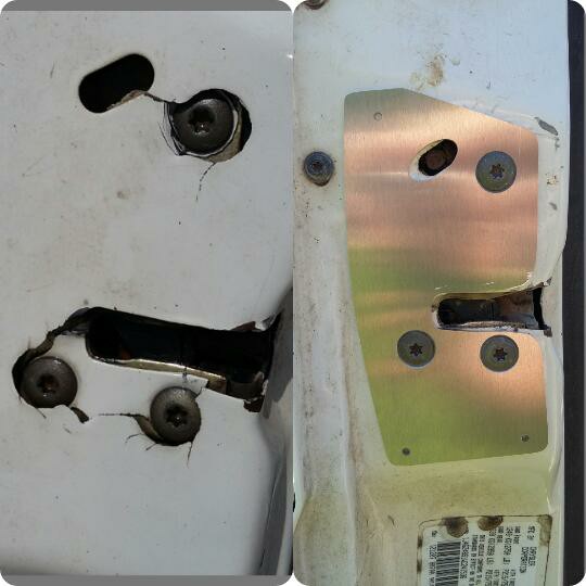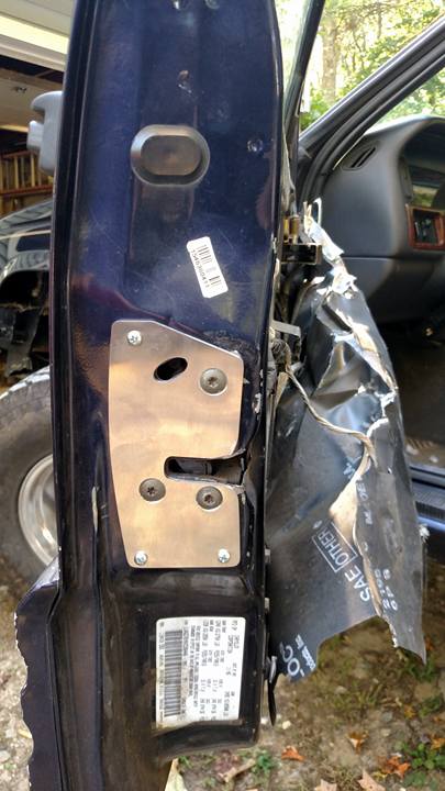 The plates we offer repair and reinforce the all too common cracks from worn door hinges with out welding or body work.